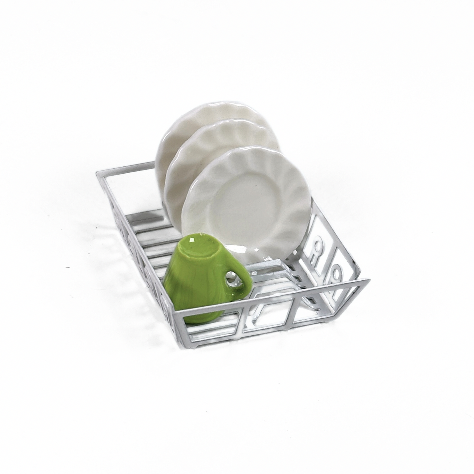 Der Wichtel hat normalerweise keine Spülmaschine sondern spült per Hand. Dazu braucht er natürlich ein Abtropfgestell, um seine Teller, Tassen und Besteck abtropfen zu lassen.