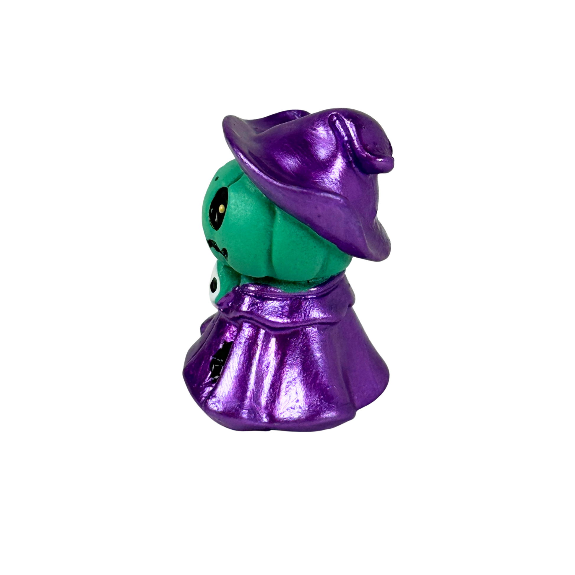 Unsere kleine Kürbis-Hexe ist ein echter Blickfang in jeder Wichtellandschaft. Mit ihrem lila Gewand und dem grünen Kürbiskopf bringt sie eine Portion Magie und Gruselstimmung direkt vor deine Wichteltür.