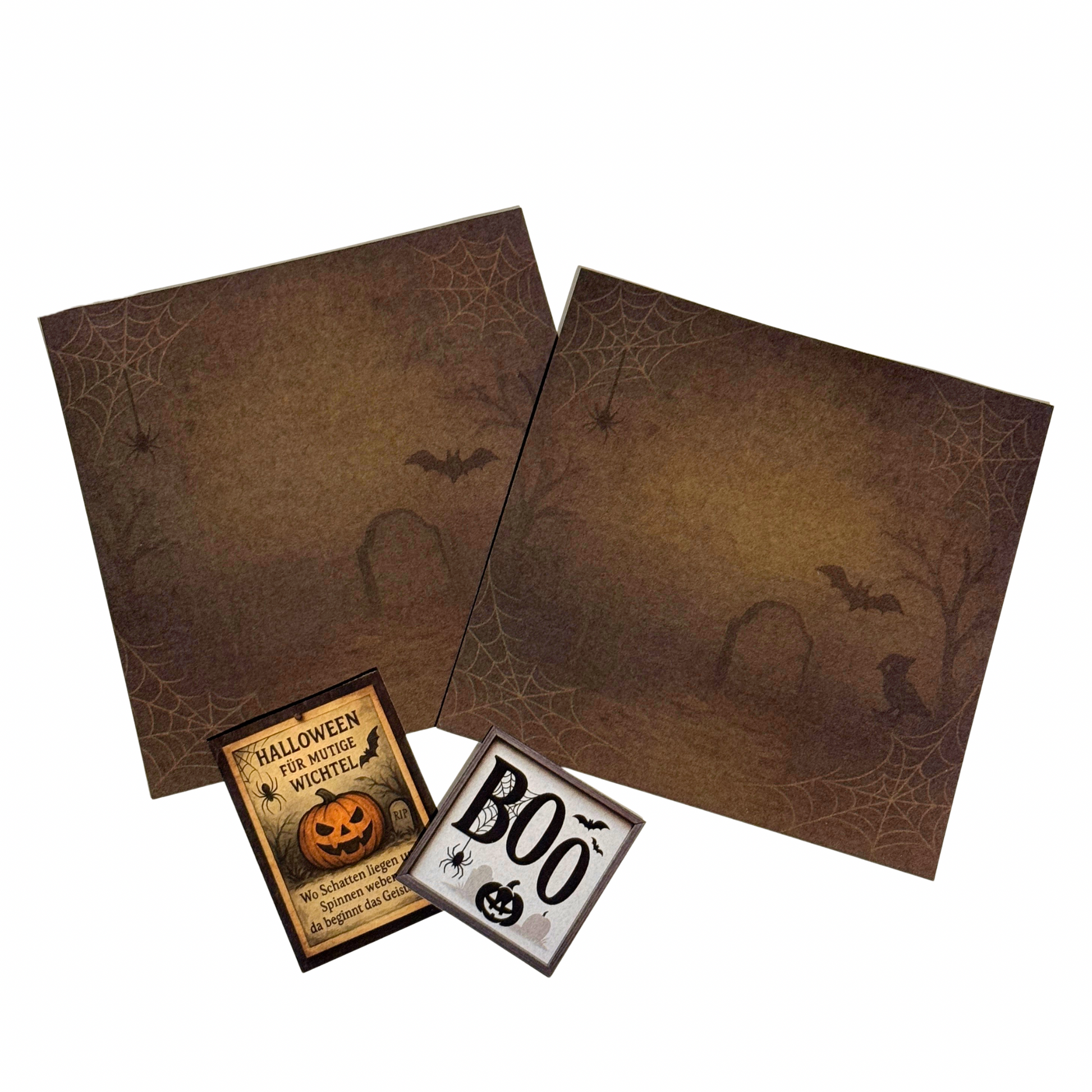Ergänzt wird das Set durch zwei kleine Halloween-Plakate, mit denen du deine Deko noch individueller gestalten kannst – zum Beispiel an der Wand, an Mini-Zäunen oder auf einem Basteltisch.