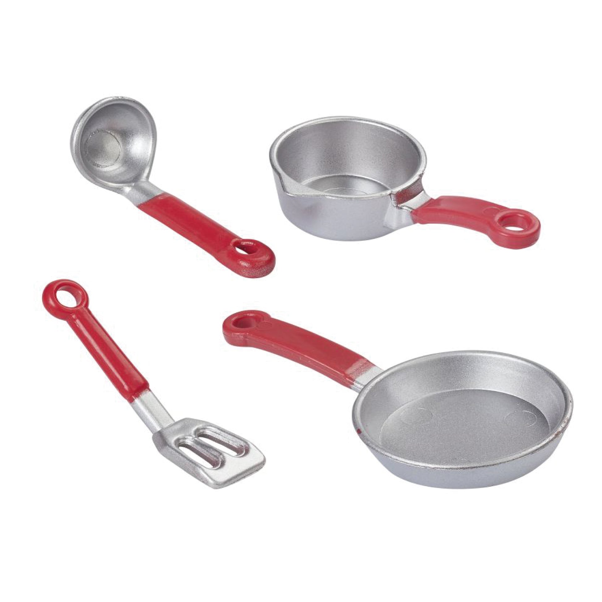 Dieses 4-teilige Pfannenset aus Kunststoff enthält eine große Pfanne, eine Kasserole, einen Pfannenwender und einen Schöpflöffel. Mit diesen Utensilien kann der Wichtel in seiner Küche wunderbar Kochen und leckere Gerichte zaubern. Denn hinter einer Wichteltür kreiert so ein Wichtel die wundervollsten und manchmal ausgefallene Mahlzeiten.