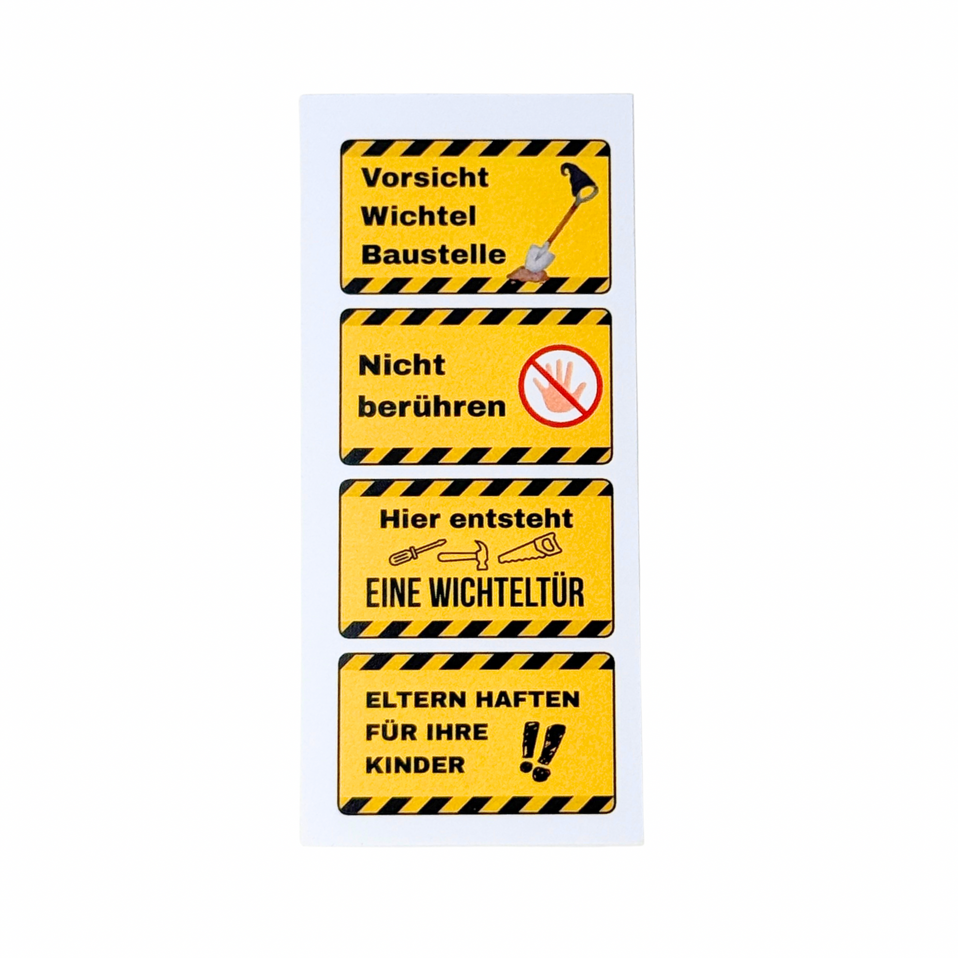 Dieses 4er-Set kleiner Schilder zum Selbstausschneiden ist ideal, um die Wichtelwelt individuell zu gestalten.