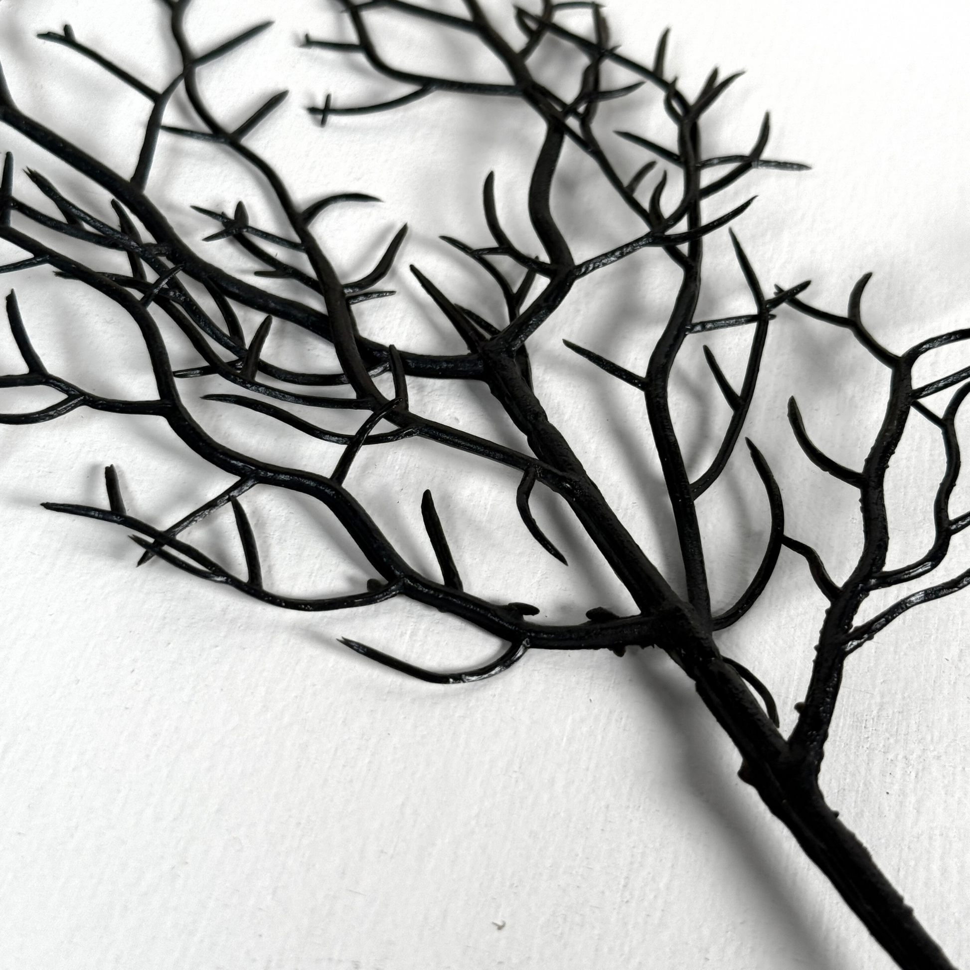 Durch die feine Struktur wirken die Äste filigran, bleiben aber formstabil und lassen sich vielseitig arrangieren – einzeln, im Bündel oder kombiniert mit Kürbissen, Spinnennetzen und kleinen Fledermäusen.