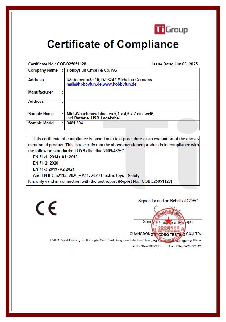 HobbyFun GmbH & Co. KG Röntgenstrasse 10 D-96247 Michelau | mail@hobbyfun.de